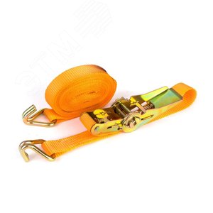 Ремень шириной 25мм, с храповиком и крюками, состоящий из 2-х частей, длиной 4,5м и 0,5м для закрепления груза при перемещении до 1т методом в обхват