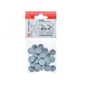Заглушка декоративная 12 мм светло-серая (30 шт) - пакет Tech-Krep