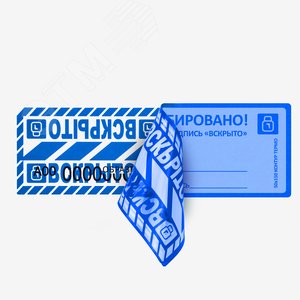 Представляет собой самоклеящуюся этикетку на специальной подложке, выполненную из полиэстера с высокоадгезивным клеевым слоем. При попытке отклеивания от опломбируемой поверхности проявляются надписи ''Вскрыто'' и значок производителя, не исчезающие при повторном наклеивании. Воздействие на наклейку высокой температурой приводит к необратимому потемнению изделия, что служит дополнительной защитой. Каждая наклейка имеет свой нестираемый индивидуальный номер, который остается на опломбируемой поверхности, что исключает возможность подмены. Содержит поля ''дата'' и ''подпись'' для удобства в работе. Подходит для пломбирования любых чистых поверхностей.