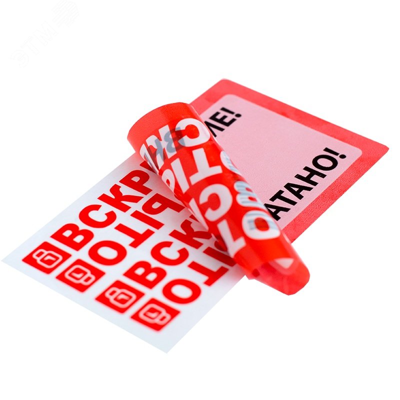 "Представляет собой самоклеющуюся этикетку на специальной подложке, выполненную из полиэстера с высокоадгезивным клеевым слоем. При попытке отклеивания от опломбируемой поверхности проявляются надписи """"ВСКРЫТО"""" и значок производителя, не исчезающие при повторном наклеивании. Воздействие на наклейку высокой температурой приводит к необратимому потемнению изделия, что служит дополнительной защитой. Каждая наклейка имеет свой нестираемый индивидуальный номер, который остается на опломбируемой поверхности, что исключает возможность подмены. Содержит поля """"дата"""" и """"подпись"""" для удобства в работе. Подходит для пломбирования любых чистых поверхностей."