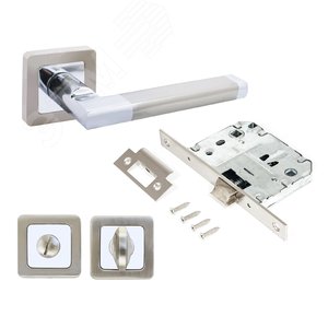 Комплект ручек и защелка АЛЛЮР АРТ ВЕНСАН SN/CP+L7050S SN+BK-S1 SN/CP(2682/S7050) мат.ник/хром с фикс