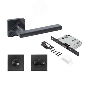 Комплект ручек и защелка АЛЛЮР АРТ ВЕНСАН BL+L7050S BL+BK-S1 BL (26150/S7050) матовый черный с фикс