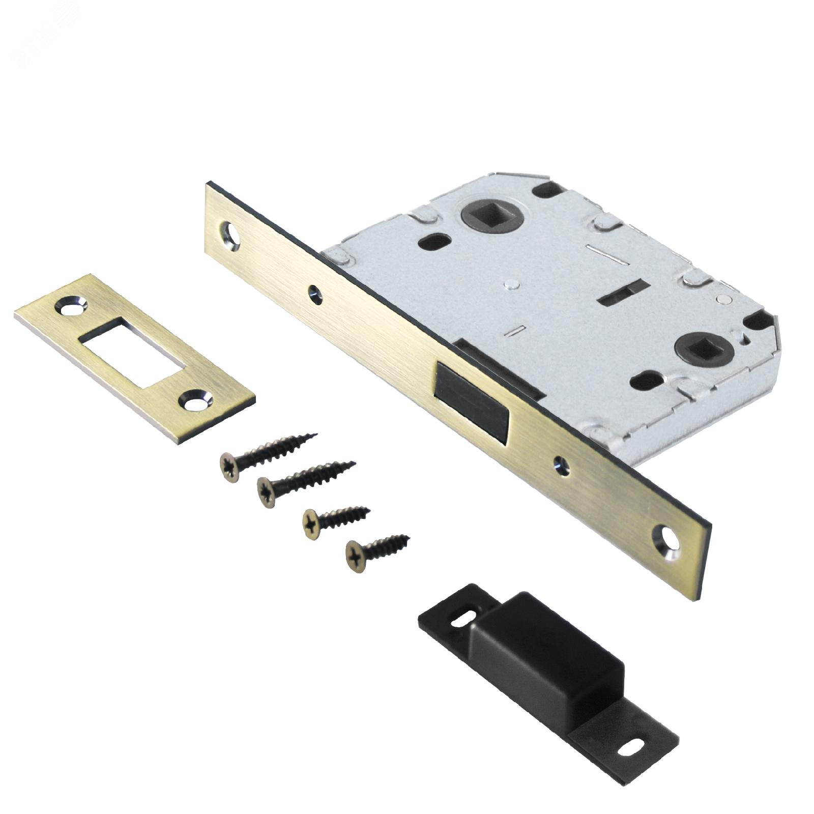 Защелка врезная универсальная без ручек для деревянных межкомнатных дверей, АЛЛЮР АРТ L7050-MS AB старая бронза