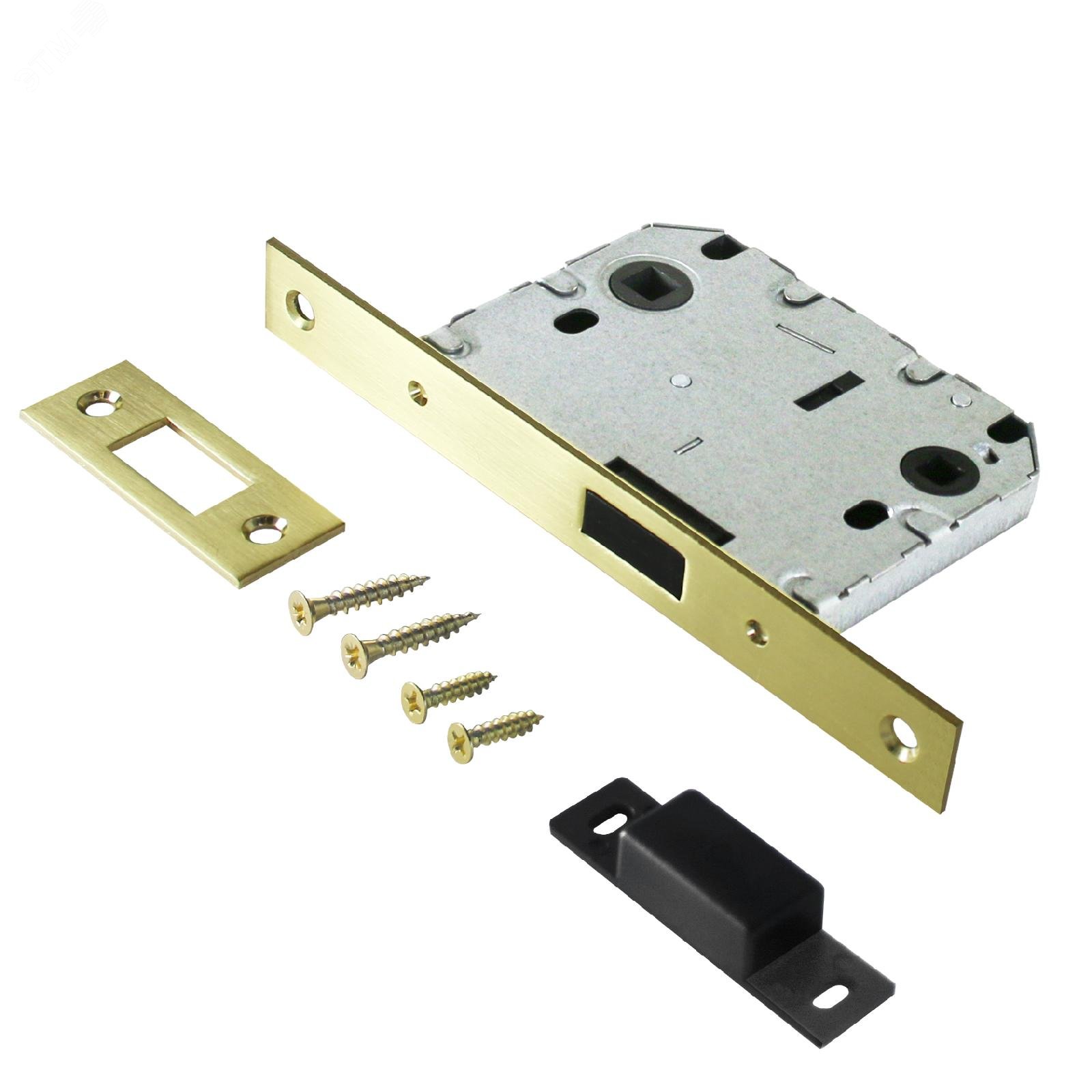 Защелка врезная универсальная без ручек для деревянных межкомнатных дверей, АЛЛЮР АРТ L7050-MS SB золото матовое