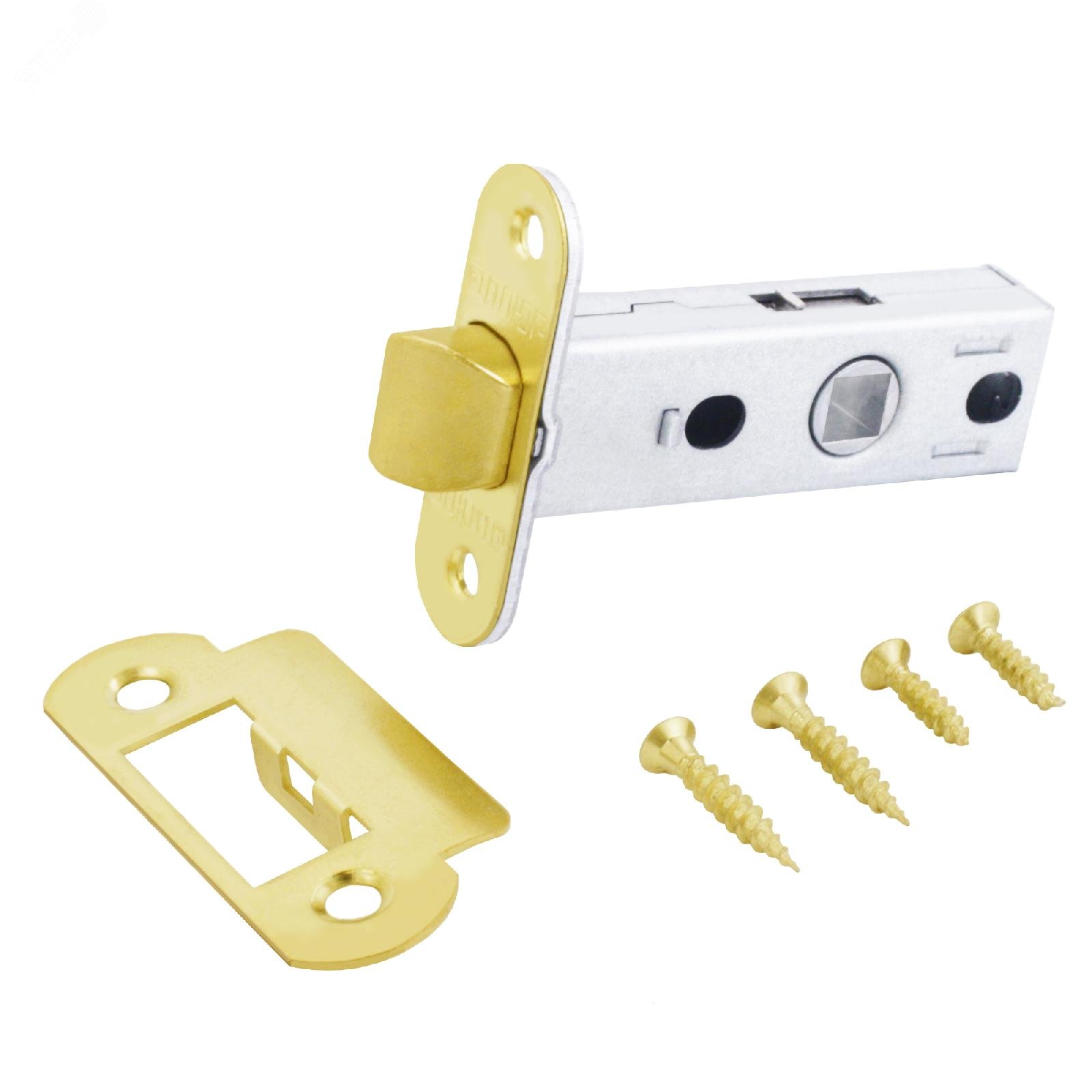 Защелка врезная универсальная без ручек для деревянных межкомнатных дверей, АЛЛЮР АРТ L45-8-R18 PB золото