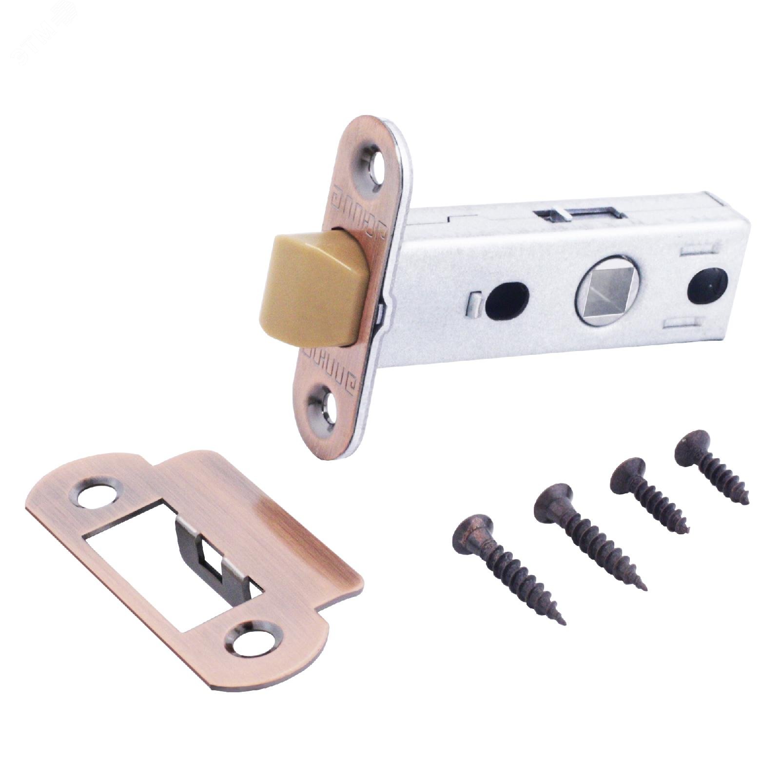 Защелка врезная универсальная без ручек для деревянных межкомнатных дверей, АЛЛЮР АРТ L45-8-PR18 AC старая медь