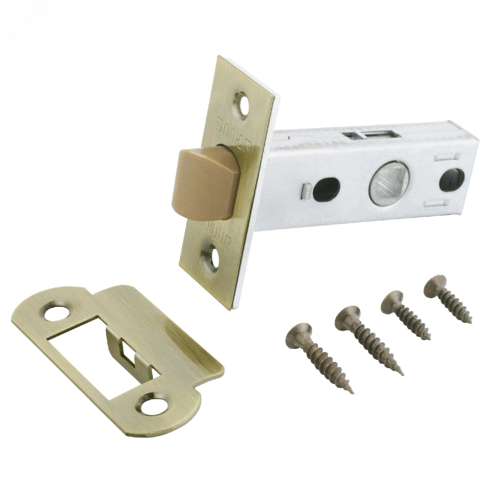 Защелка врезная универсальная без ручек для деревянных межкомнатных дверей, АЛЛЮР АРТ L45-8-P AB старая бронза