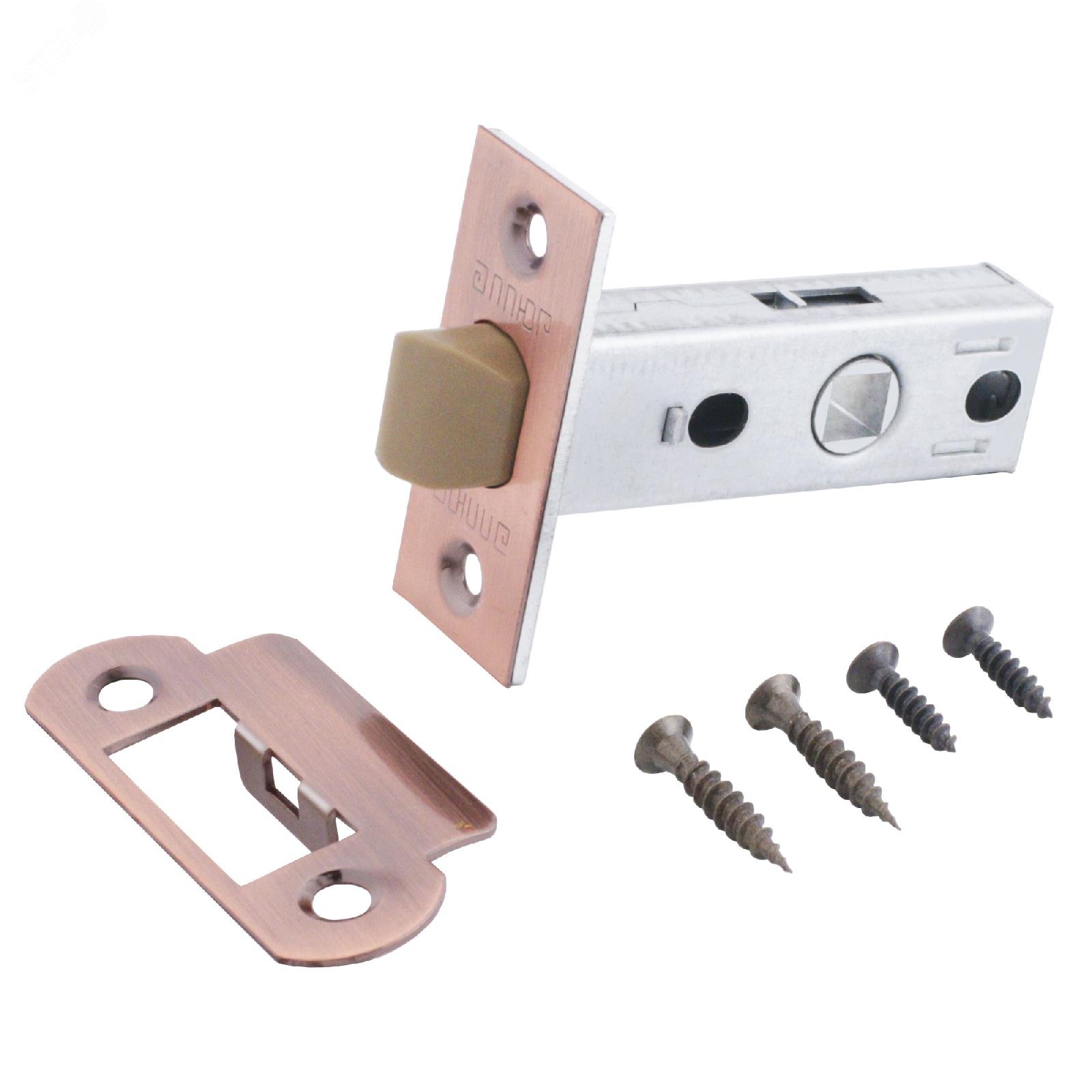 Защелка врезная универсальная без ручек для деревянных межкомнатных дверей, АЛЛЮР АРТ L45-8-P AC старая медь