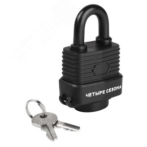 Навесной замок ЧЕТЫРЕ СЕЗОНА идеально подходит для защиты вашего имущества от непрошенных гостей. Замок пригодится для запирания гаражных ворот, распределительных щитков, складов и других объектов. Дужка замка выполнена из закаленной стали, что делает её перекусывание достаточно сложным даже для таких инструментов, как болторезы и арматурные ножницы. Механизм замка выполнен из долговечного и надежного материала. В комплекте с замком идет 3 ключа, поэтому при потере одного вам не нужно беспокоиться. Специальная прорезиненная оболочка препятствует проникновению влаги внутрь механизмов замка.