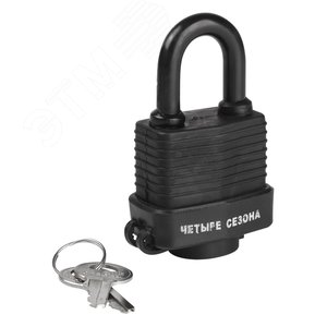 Навесной замок ЧЕТЫРЕ СЕЗОНА идеально подходит для защиты вашего имущества от непрошенных гостей. Замок пригодится для запирания гаражных ворот, распределительных щитков, складов и других объектов. Дужка замка выполнена из закаленной стали, что делает её перекусывание достаточно сложным даже для таких инструментов, как болторезы и арматурные ножницы. Механизм замка выполнен из долговечного и надежного материала. В комплекте с замком идет 3 ключа, поэтому при потере одного вам не нужно беспокоиться. Специальная прорезиненная оболочка препятствует проникновению влаги внутрь механизмов замка.