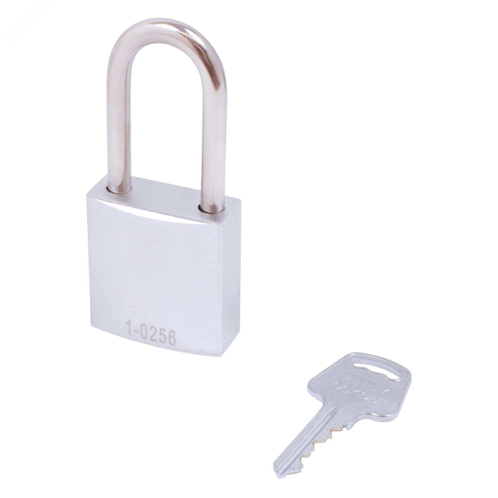 Замок навесной. Алюминиевый корпус, устойчивый к УФ-лучам, химически агрессивным средам и температурам, размер корпуса 40x45 мм (ВxШ), стальная дужка с покрытием из хрома, высота от корпуса до дужки 38 мм, диаметр дужки 6 мм, латунный цилиндр (6 пин) с 1 ключом, цвет корпуса белый, система ключей KD/KA/MK/KAMK.