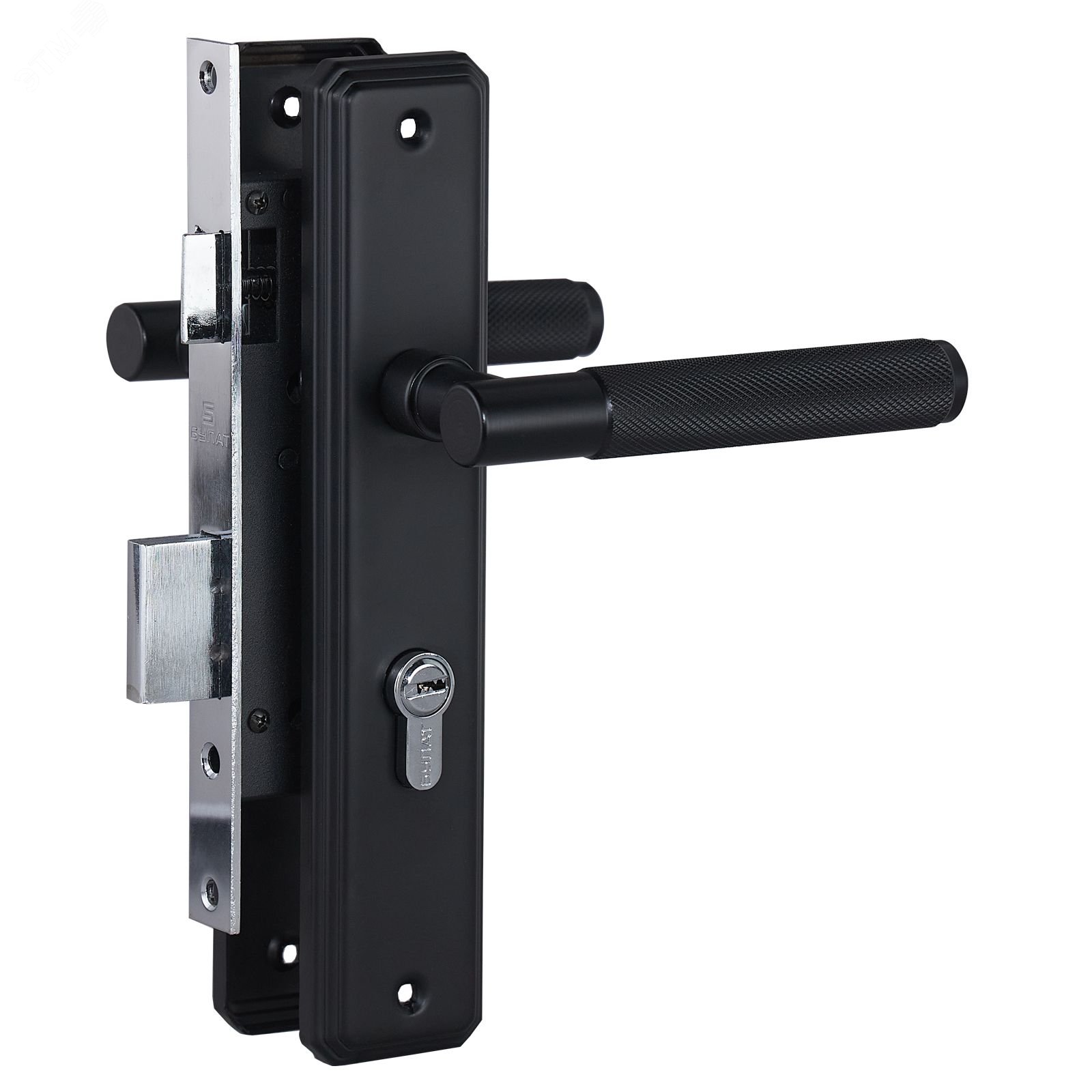 БУЛАТ ЗВ4-1.70.02.02 ФЕРОНА черный 5 перф.кл. Замок врезной с/руч (12) . Замок врезной с ручками. Предназначен для установки в деревянные двери толщиной 35-45 мм, правого и левого открывания. Дверь может быть закрыта на защелку и открыта с помощью фалевой ручки при открытом засове замка. Один сплошной стальной ригель размером 38х10х20 мм. Универсальная защелка. Стальной корпус покрыт полимерной краской. Межосевое расстояние 70 мм. Удаление ключевого отверстия 40мм. Материал ручек - СТАЛЬ. Комплектация - латунный цилиндровый механизм 62мм, 5 перфоключей, ответная планка, винтовые стяжки.