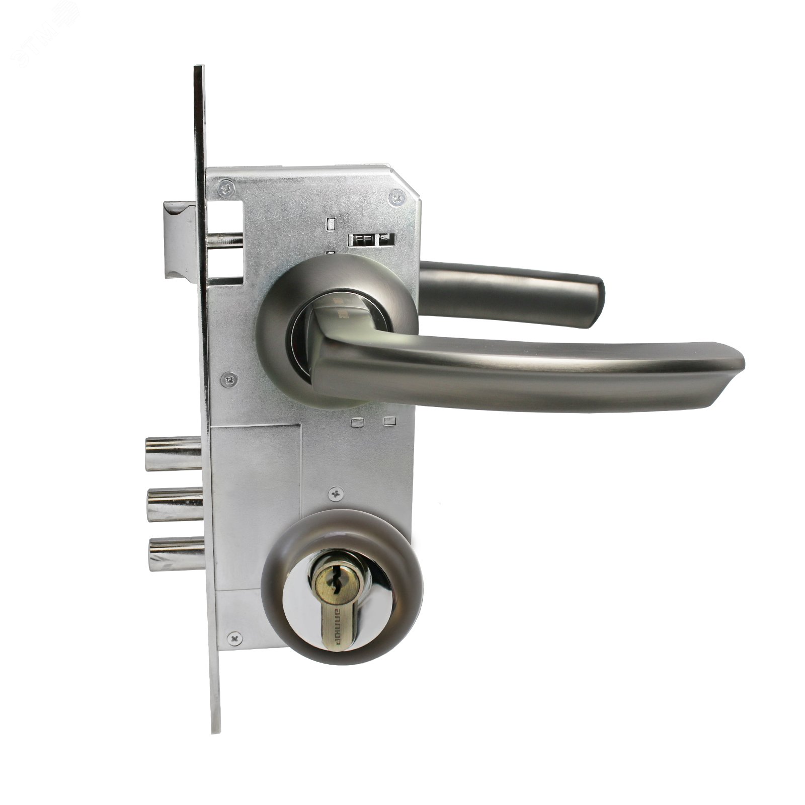 Замок врезной цилиндровый с ручками для деревянных дверей АЛЛЮР АРТ ЗВ4-85А.1140 графит