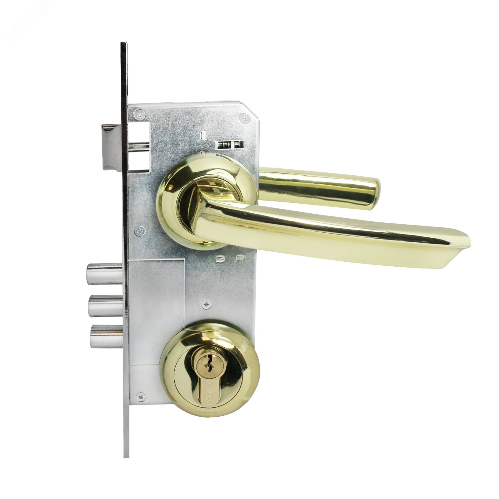 Замок врезной цилиндровый с ручками для деревянных дверей АЛЛЮР АРТ ЗВ4-85А.1160 золото