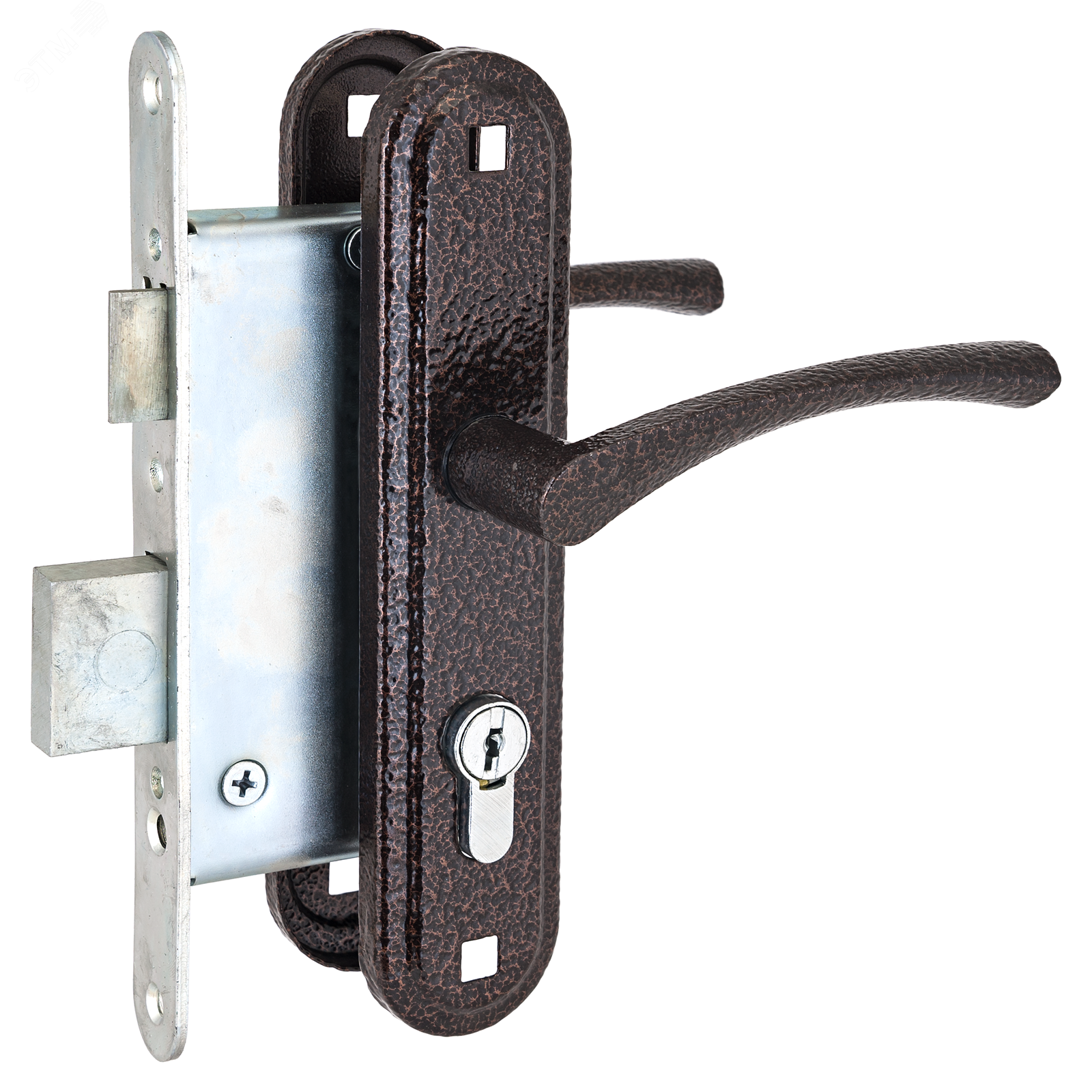 Замок врезной цилиндровый с ручками для деревянных дверей, СТАНДАРТ Россия ЗВ4-3.07С медь