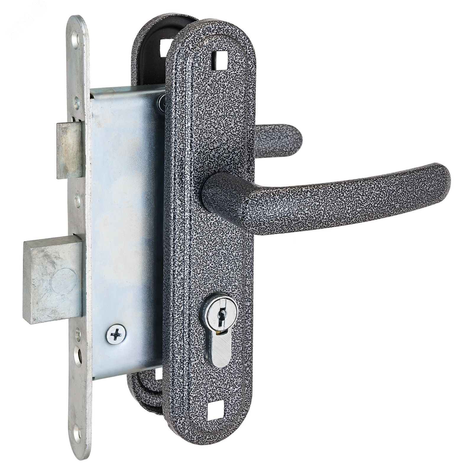 Замок врезной цилиндровый с ручками для деревянных дверей, СТАНДАРТ Россия ЗВ4-7.02С серебро