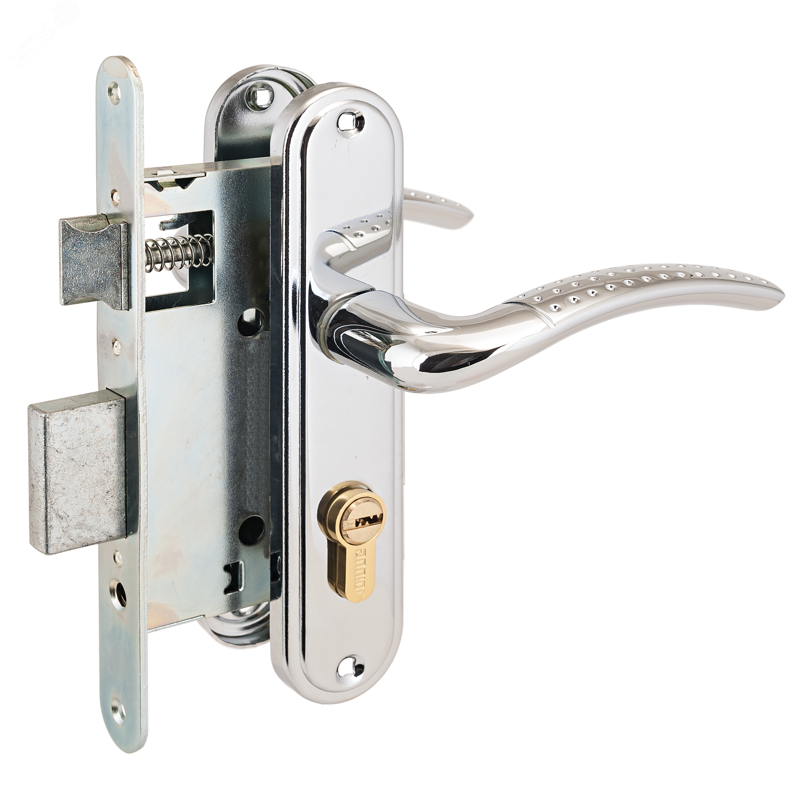 Замок врезной цилиндровый с ручками для деревянных дверей АЛЛЮР ЗВ 4-132 хром