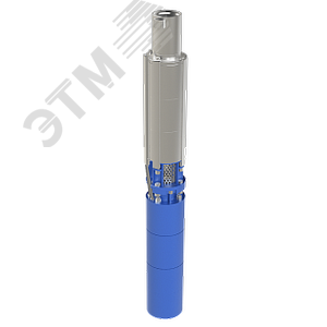 Агрегаты электронасосные типа 2FRS Агрегат состоит из асинхронного герсметичного электродвигателя, и многосекционной центробежной наосной части, соединённых между собой жёсткой муфтой. Ротор насоса и ротор электродвигателя вращаются в резинометаллических подшипниках. В днище электродвигателя расположен упорный подшипник, воспринимающий осевую нагрузку. На входе в насосную часть установлена защитная сетка - фильтр, предохраняющая насос от попадания крупных механических частиц. Электродвигатель водозаполненный с короткозамкнутым ротором, с синхронной частотой врващения 3000 об/мин. ''Беличья клетка'' ротора выполнена из меди. Обмотка статора выполнена водостойким проводом. Охлаждение электродвигателя осуществляется перекачиваемой водой.