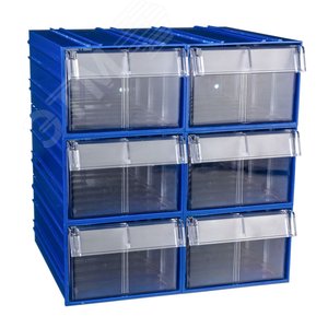 Комплект коробов Стелла-техник C-2-К6 синий-прозрачный 6 шт. Пластиковые короба С-2 с выдвижными ящиками изготовлены из полистирола и предназначены для хранения мелкоштучных изделий и комплектующих. Короб снаружи короб имеет специальные пазы, с помощью которых короба можно скреплять между собой. Благодаря этому, возможно конструирование коробов в модули разных размеров, в зависимости от планируемого месторасположения. Прозрачные выдвижные ящики обладают двумя преимуществами: во-первых, позволяют быстро находить товары, во-вторых, обеспечивают контроль над полнотой содержимого. Короба контейнеров для складского хранения С-2 имеют рельефную структуру днища и усиленные толстые стенки. За счет этого изделия справляются с достаточно высокими эксплуатационными нагрузками.
