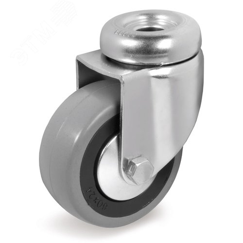 Колесо поворотное, диаметр 125мм, грузоподъемность 80кг, серая резина, полипропилен