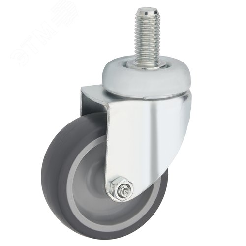 Колесо поворотное, диаметр 50мм, грузоподъемность 40кг, серая резина, полипропилен, штырь с резьбой M8
