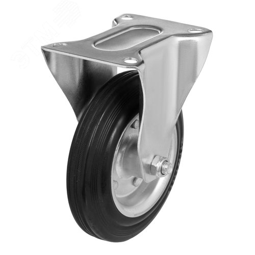 Колесо неповоротное 4002-160, диаметр 160мм., грузоподъемность 145кг. Колеса из черной литой резины, центр из двух гальванизированных дисков из штампованной стали. Роликовый (игольчатый) подшипник расположен в углублении, выдавленном под прессом, и содержит цилиндрические ролики подшипника. Неповоротный кронштейн изготовлен прессованием из листовой стали. Возможно применение на относительно грубых полах складов, заводов, производственных и строительных площадках. Данные колеса можно использовать на неровных поверхностях, во влажной окружающей среде и использовании вне помещения, не рекомендуется применять в среде с органическими растворителями, хлорированными веществами, гидрокарбонатами и минеральными маслами. Температура эксплуатации от -20 до +70С.