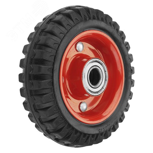 Колесо 5000-160, диаметр 150мм под ось 17мм, грузоподъемность 160кг, резина, металл. Колеса из черной литой резины с шарикоподшипником. Центр-сердечник состоит из двух гальванизированных дисков, соединённых прочными заклепками. Все элементы выполнены из высококачественной стали. Возможно применение на относительно грубых полах складов, заводов, производственных и строительных площадках. Данные колеса можно использовать на неровных поверхностях, во влажной окружающей среде и использовании вне помещения, не рекомендуется применять в среде с органическими растворителями, хлорированными веществами, гидрокарбонатами и минеральными маслами. Температура эксплуатации от -20 до +70С.