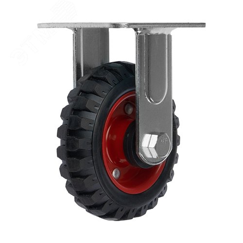 Колесо 5002-125, диаметр 125мм, грузоподъемность 120кг, резина, металл. Колеса из черной литой резины с шарикоподшипником на неповоротном кронштейне. Центр-сердечник состоит из двух гальванизированных дисков, соединённых прочными заклепками. Все элементы выполнены из высококачественной стали. Возможно применение на относительно грубых полах складов, заводов, производственных и строительных площадках. Данные колеса можно использовать на неровных поверхностях, во влажной окружающей среде и использовании вне помещения, не рекомендуется применять в среде с органическими растворителями, хлорированными веществами, гидрокарбонатами и минеральными маслами. Температура эксплуатации от -20 до +70С.