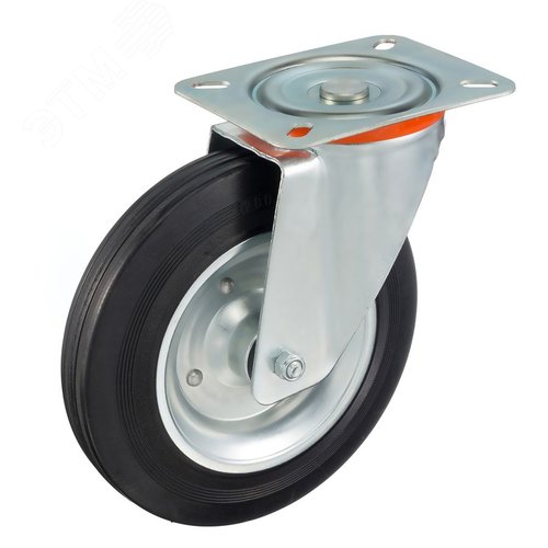 Колесо поворотное Колесо промышленное из черной резины. Жесткость 80 шор А. Центр-сердечник состоит из двух гальванизированных дисков, соединённый прочными заклепками. Все элементы выполнены из высококачественной стали. Роликовый подшипник расположен в углублении, выдавленном под прессом, и содержит цилиндрические ролики подшипника в обойме из полиамида 6. Ступица оснащена игольчатым (роликовым) подшипником. Качественный поворотный кронштейн серии NL c двойным шарикоподшипником в основании. Эта серия широко используется, с любыми тележками и контейнерами, легкой и стандартной грузоподъемности, для строительных лесов, а также для работы вне помещений. Применение: тележки для внутренних и внешних работ на складах и в промышленности, багажные тележки, для строительных лесов, контейнеры для мусора, электрооборудование. ПТемпературный диапазон эксплуатации от -20 до +60С.