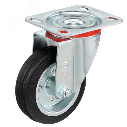 Колесо поворотное Колесо промышленное из черной резины. Жесткость 80 шор А. Центр-сердечник состоит из двух гальванизированных дисков, соединённый прочными заклепками. Все элементы выполнены из высококачественной стали. Роликовый подшипник расположен в углублении, выдавленном под прессом, и содержит цилиндрические ролики подшипника в обойме из полиамида 6. Ступица оснащена игольчатым (роликовым) подшипником. Качественный поворотный кронштейн серии NL c двойным шарикоподшипником в основании. Эта серия широко используется, с любыми тележками и контейнерами, легкой и стандартной грузоподъемности, для строительных лесов, а также для работы вне помещений. Применение: тележки для внутренних и внешних работ на складах и в промышленности, багажные тележки, для строительных лесов, контейнеры для мусора, электрооборудование. Температурный диапазон эксплуатации от -20 до +60С.