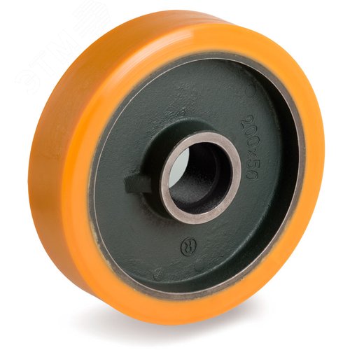 Колесо из полиуретана твердостью 95 Шор А. Контактный слой колеса изготавливается из качественного полиуретана серии TR. Этот материал очень прочен на разрыв, не трескается и способен выдерживать большие нагрузки. Сердечник колеса производится из чугуна, что позволяет перемещать повышенные веса, даже на маленьком диаметре. Ступица колеса оснащена усиленным шариковым подшипником. Возможно использование с электромеханической тягой на скорости до 16 км в час. Рекомендации к использованию: тележки со стандартной и усиленной грузоподъемностью, тележки для работ в помещениях промышленности, автоматически управляемые тележки, электротранспортеры, электроштабелеры, полотеры, электро-медицинское оборудование, передвижные театральные конструкции, краны, в цехах тяжелой промышленности Рекомендуемые опоры серии: M, P, PT, EP, EE MHD, EEG HD. Температурный диапазон эксплуатации от -20 до +80С.