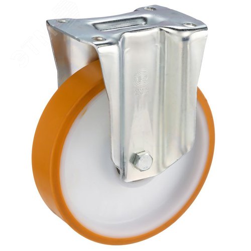 Колесо из полиуретана TR твердостью 95 Шор А. Основание из полиамида 6. Ступица отлита под подшипник скольжения. Поворотный большегрузный кронштейн серии М, оснащен двухрядным подшипником в основании. Увеличенный коэффициент жесткости полиуретанового слоя, позволяет колесу выдерживать большие нагрузки. Полиуретановый слой марки TR обеспечивает превосходную плавность хода и позволяет с легкостью перевозить груз даже с применением колес маленького диаметра. Значительно снижает шум и вибрацию, обладает высокой износостойкостью, сопротивлением качению и усилию на разрыв. Бережно относится к полам, не оставляет следов и не разрушает поверхности во время перемещения. Возможно использование с электромеханической тягой на скорости до 6 км в час.