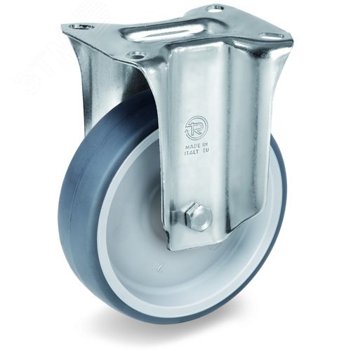 Колесо из термопластичной серой резины твердостью 85 Шор А. Основание: полипропилен. Ступица оснащена подшипником скольжения. Неповоротный кронштейн серии NL, крепление-площадка под 4 болта. Шина из серой резины, не оставляющей следов, бережно относится к декоративному и хрупкому напольному покрытию в общественных учреждениях, офисных и торговых помещениях. Превосходное скольжение гарантирует минимальное усилие при ручном передвижении. Возможно использование в агрессивных химических средах. Рекомендации для использования: тележки для багажа, для инструментов, для общественных учреждений и пунктов общественного питания, тележки для внутреннего промышленного применения, трубчатые тележки. Температурный диапазон эксплуатации от-20 до+70С. Грузоподъёмность на тележку с четырьмя колесами-до 600кг.