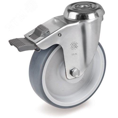Колесо из термопластичной серой резины твердостью 85 Шор А. Основание: полипропилен. Ступица оснащена подшипником скольжения. Шина из серой резины, не оставляющей следов, бережно относится к декоративному и хрупкому напольному покрытию в общественных учреждениях, офисных и торговых помещениях. Превосходное скольжение гарантирует минимальное усилие при ручном передвижении. Возможно использование в агрессивных химических средах. Рекомендации для использования: тележки для багажа, для инструментов, для общественных учреждений и пунктов общественного питания, тележки для внутреннего промышленного применения, трубчатые тележки. Температурный диапазон эксплуатации от-20 до+70С. Грузоподъёмность на тележку с четырьмя колесами-до 300кг.