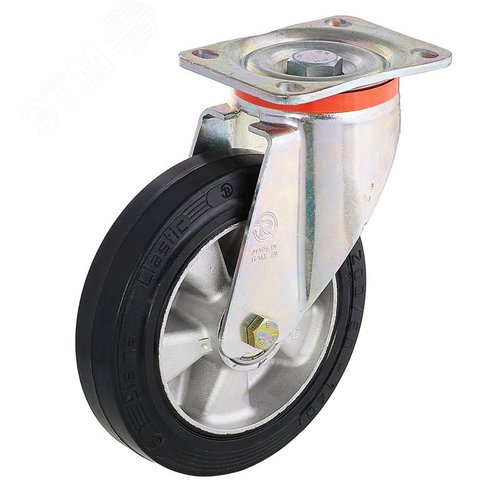 Классическое колесо из эластичной резины SIGMA ELASTIC, твердостью 70 Шор А. Основание из высококачественного алюминия, отлитого под давлением. Ступица оснащена шариковым подшипником с распорной втулкой. Поворотный большегрузный кронштейн серии Р оснащен двухрядным подшипником в основании и стоек к боковым ударным нагрузкам. Превосходная эластичность гарантирует хорошее преодоление препятствий, сокращение шума и вибраций, бережно относится к полам. Колесо предназначено для средних и больших нагрузок и может использоваться на любых полах, в том числе на улице. Возможно использование с электромеханической тягой на скорости до 6 км в час. Идеально для использования на телегах грузоподъемностью до 1,5 т.