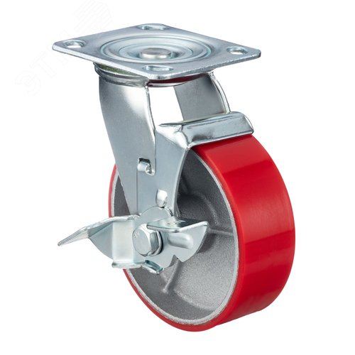 Колесо d=150мм, чугун/полиуретан, поворотное с тормозом, игольчатый, г/п=300кг