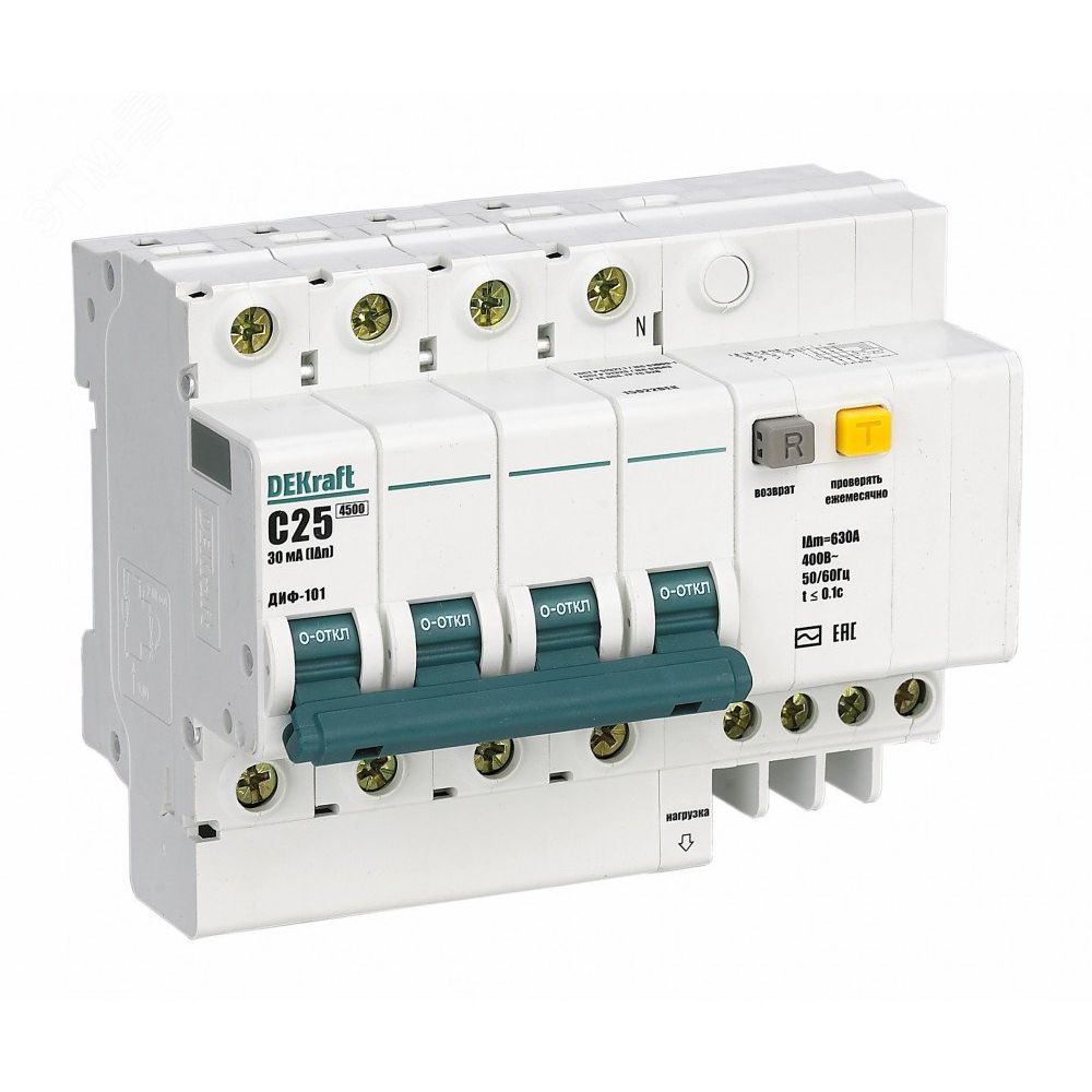 Выключатель автоматический дифференциальный АВДТ встроенная защита от сверхтоков 3Р 40А 30мА AC D ДИФ-101