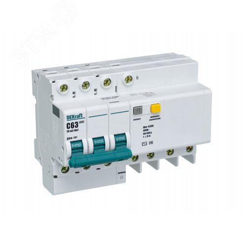 Выключатель автоматический дифференциальный АВДТ встроенная защита от сверхтоков 3P+N 63А 30мА AC С ДИФ-101