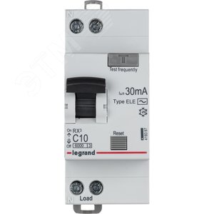 Выключатель автоматический дифференциального тока АВДТ RX3 6000 - 6 ка - тип характеристики С - 1П+Н - 230 В~ - 10 А - тип AС - 30 ма - 2 модуля