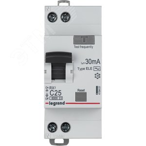 Выключатель автоматический дифференциального тока АВДТ RX3 6000 - 6 ка - тип характеристики С - 1П+Н - 230 В~ - 25 А - тип AС - 30 ма - 2 модуля