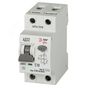 АВДТ электронное 6кА D326E2C10АC30P АД-32 1P+N C10 30мА тип АC защита 270В ЭРА PRO