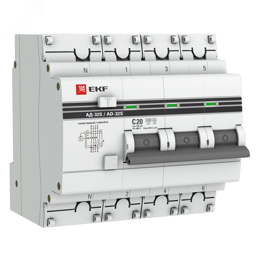 Дифференциальный автомат АД-32 (селективный) 3P+N 20А/100мА PROxima
