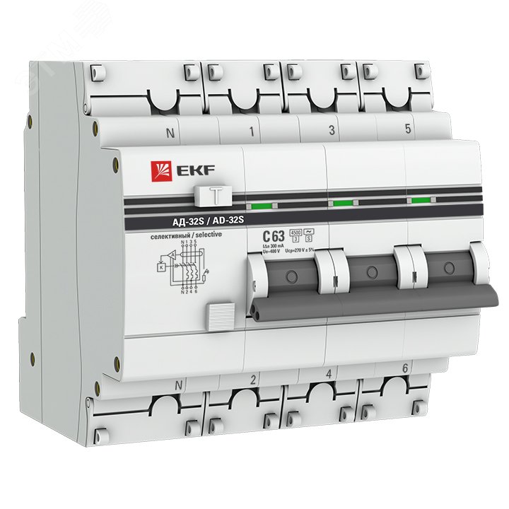 Автомат дифференциальный АД-32 (селективный) 3P+N 63А/300мА PROxima