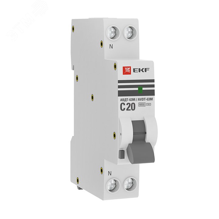 Автоматический выключатель дифференциального тока малогабаритный АВДТ-63М EKF PROxima представляет аппарат, сочетающий функции автоматического выключателя с электронным УЗО типа АС в компактном корпусе шириной один модуль. При обнаружении автоматическим выключателем на защищаемом участке сети тока утечки (повреждения) на землю или сверхтока (тока перегрузки или короткого замыкания) происходит срабатывание устройства, приводящее к отключению защищаемой сети. Особое отличие дифференциальных автоматических выключателей EKF с электронным УЗО – в наличии блока защиты от перенапряжения. Возможна коммутация алюминиевым и медным проводом.