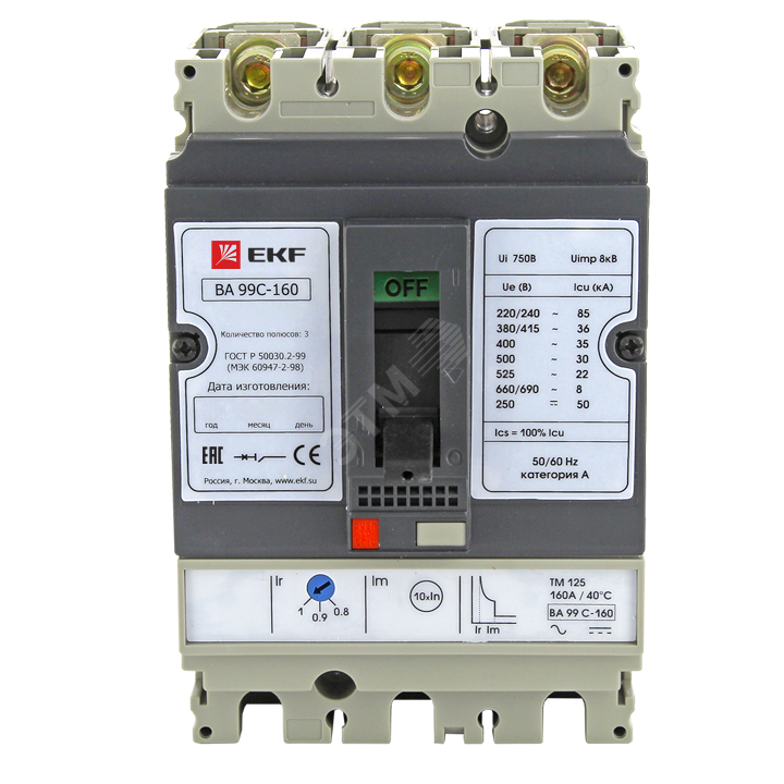Выключатель автоматический ВА-16А 36кА ВА-99С/160 термомагнитный расцепитель EKF mccb99c-160-16