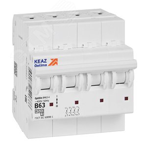 Выключатель автоматический четырехполюсный 63А B 4,5кА AC OptiDin BM63-4B63-4,5-УХЛ3