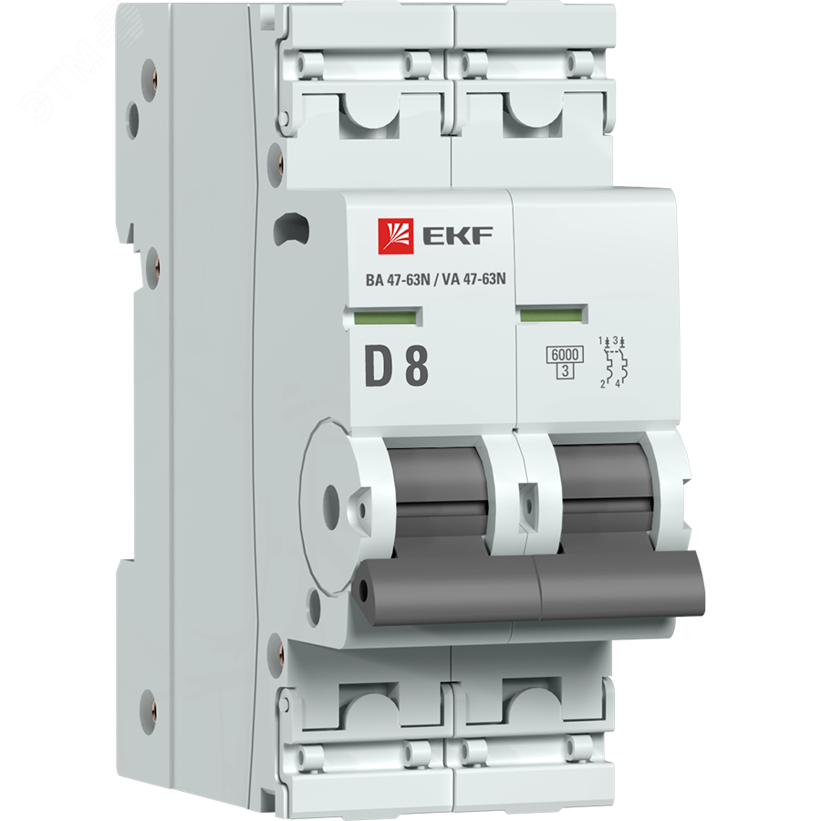Автоматический выключатель 2P 8А (D) 6кА ВА 47-63N PROxima EKF M636208D