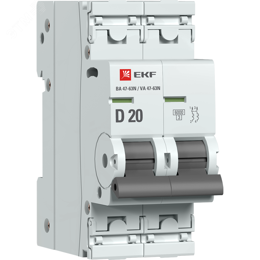 Автоматический выключатель 2P 20А (D) 6кА ВА 47-63N PROxima EKF M636220D
