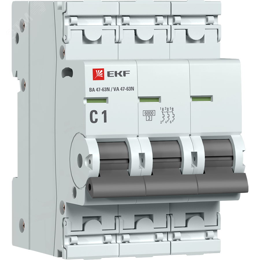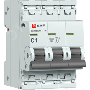 Автоматический выключатель 3P 1А (C) 6кА ВА 47-63N PROxima EKF M636301C