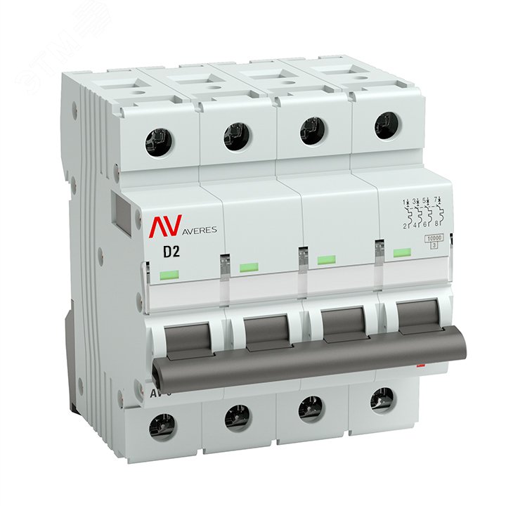 Выключатель автоматический AV-10 4P 2A (D) 10кА AVERES EKF mcb10-4-02D-av